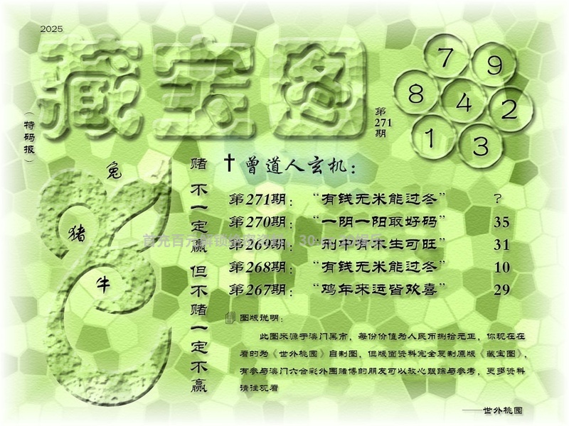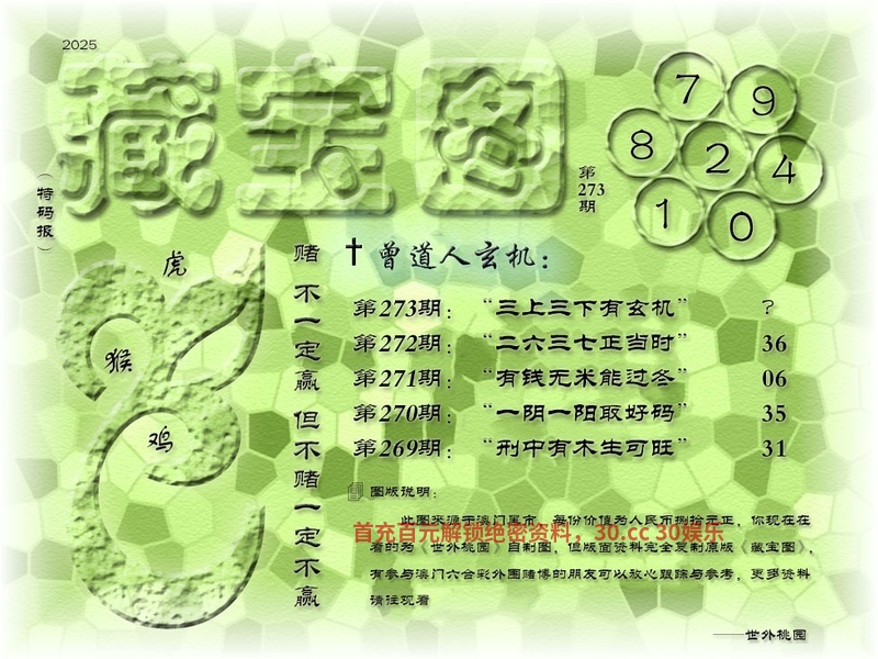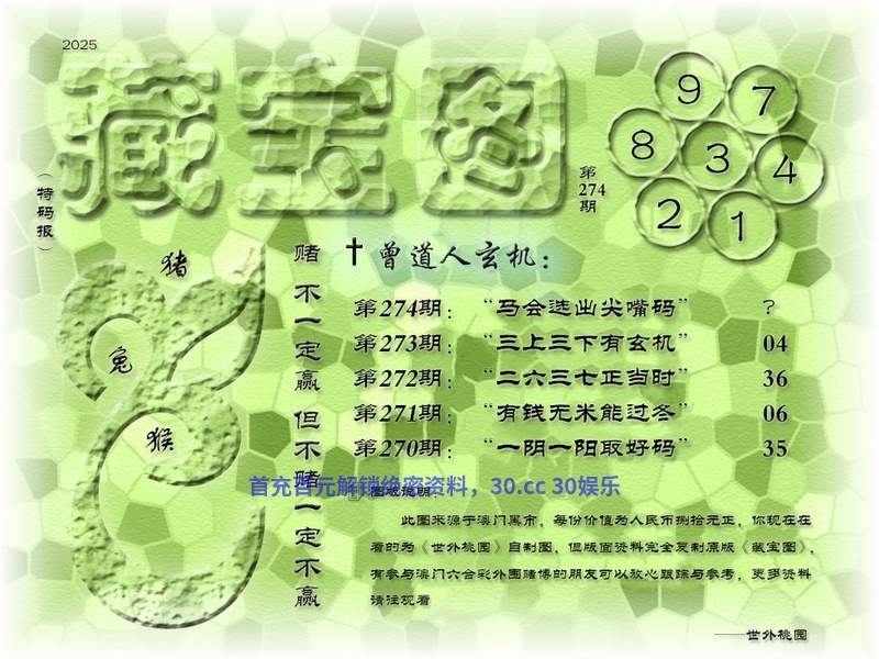 275期藏宝图曾道人玄机:更新 解:更新 解特肖:更新 |